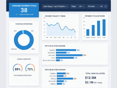 Monitor your accounts receivable aging in real-time. Identify overdue claims, track payment cycles, and reduce AR days. Our dashboards help optimize cash flow by providing insights into outstanding balances.